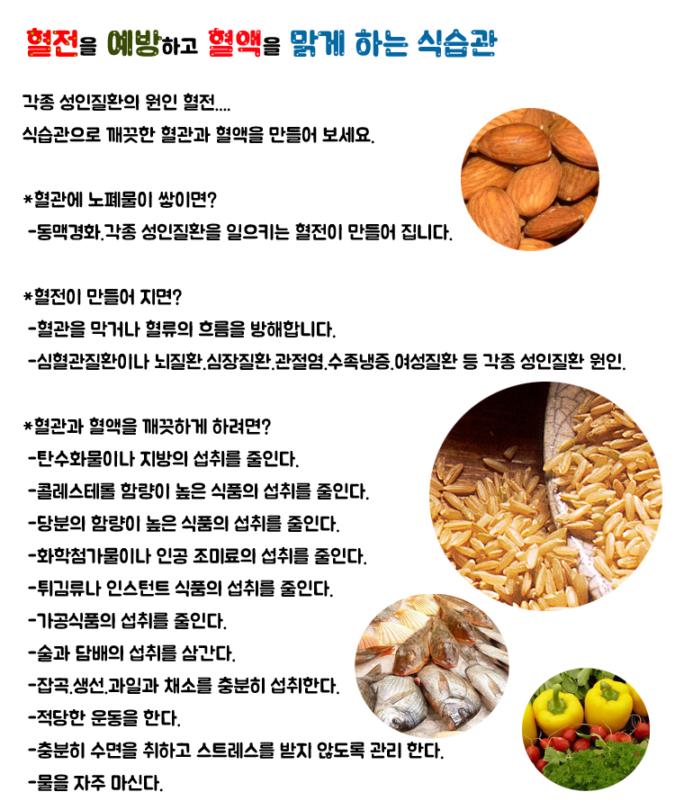 만병의 근원이 되는 혈관건강을 깨끗하고 탄력 있게 관리하는 방법입니다.