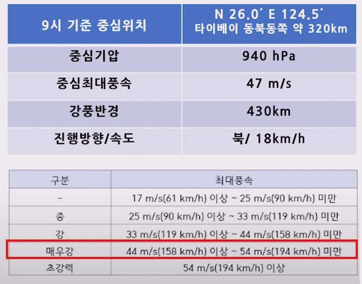 ▶바람은 최대 풍속이 초속 54m 이상의로 예상.