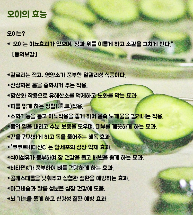 | 오이의 영양과 효능 |